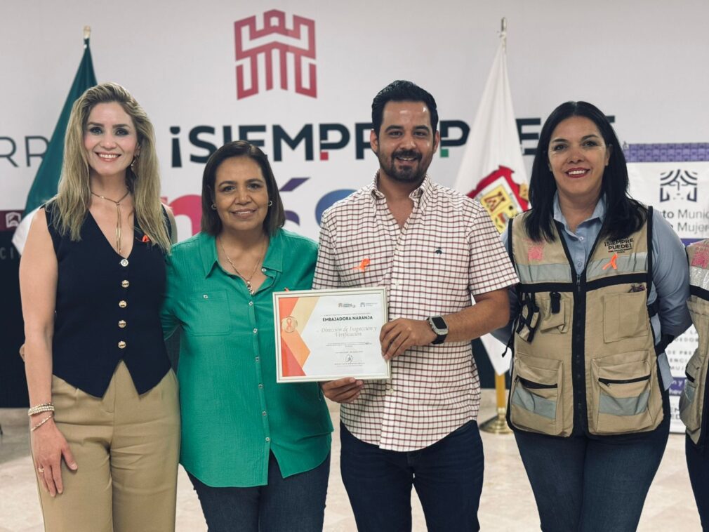 De la misma manera, se entregó un reconocimiento a la Dirección de Inspección y Verificación, que se une como embajadora naranja para la erradicación de la violencia de mujeres y niñas.