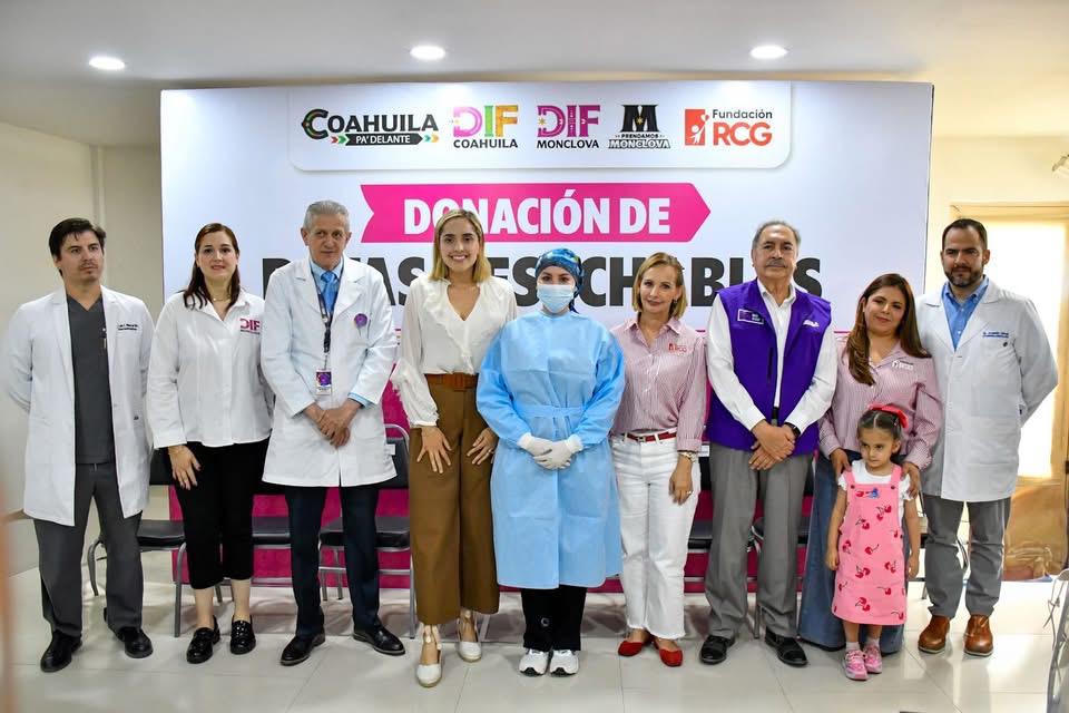 La entrega del donativo se llevó a cabo en las instalaciones del DIF, donde Mavi Sosa Rubio, presidenta honoraria del sistema, agradeció a Lorena de los Santos de González, presidenta de la fundación, por su solidaridad y por sumarse a las causas que benefician a quienes trabajan a diario para cuidar la salud de las y los monclovenses.