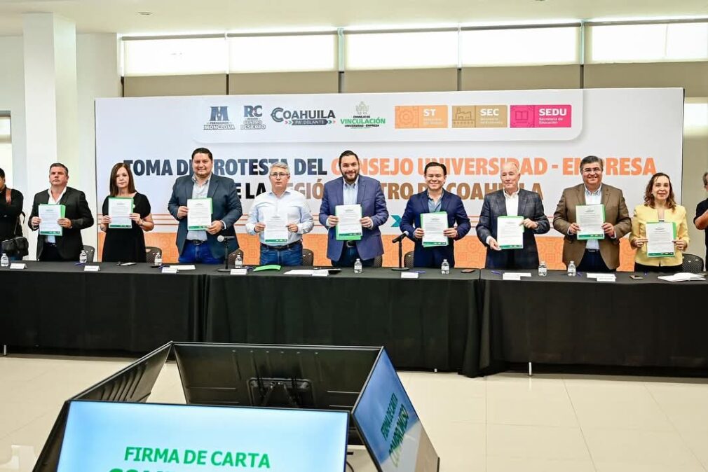 El director de Vinculación de la Secretaría de Educación, Eduardo José Hochmann, en representación del secretario de Educación, Emmanuel Garza Fishburn, tomó protesta a este nuevo consejo integrado por alcaldes y alcaldesas de la región, representantes del Tec Monclova, la UAdeC, la Universidad Politécnica de Monclova-Frontera, la Universidad Tecnológica de la Región Centro, el Centro Universitario Coahuilense, y de empresas que mueven la economía de la región.