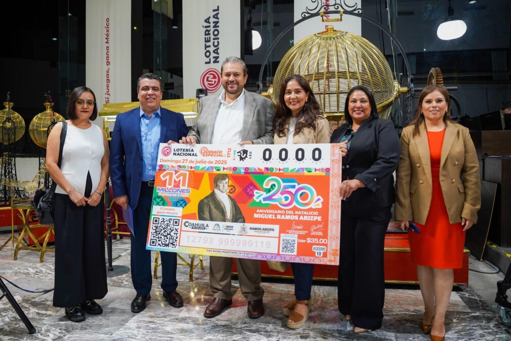 Ciudad de México, a 27 de julio del 2025.& . – Este domingo, el alcalde de Ramos Arizpe, Tomás Gutiérrez Merino, participó como invitado especial en el Sorteo Zodiaco Especial No. 1712 de la Lotería Nacional, con motivo del 250 aniversario del natalicio de Don Miguel Ramos Arizpe, figura clave en la historia de México y orgullo de su ciudad natal.
