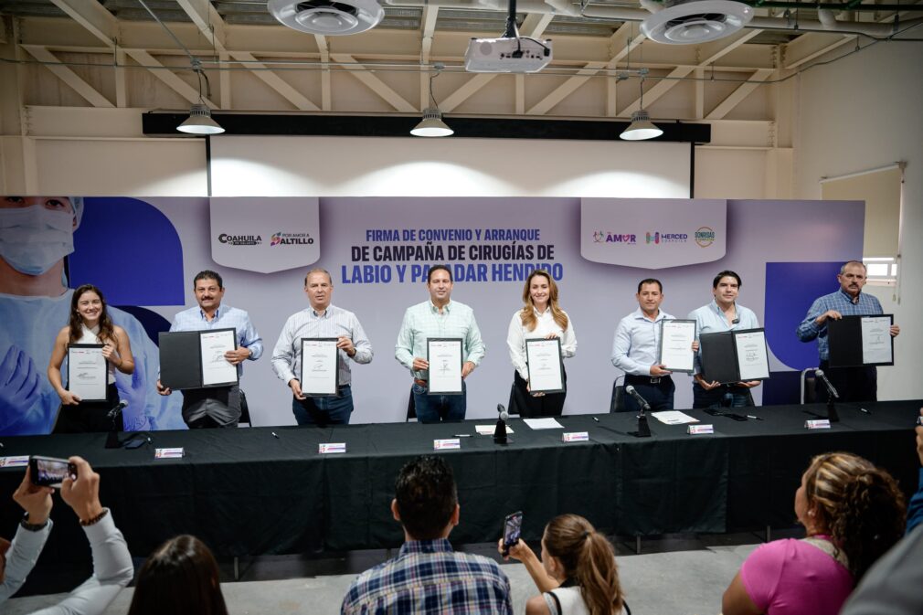 Saltillo, Coahuila de Zaragoza; 30 de julio de 2025.- El alcalde de Saltillo, Javier Díaz González y la presidenta honoraria del DIF Saltillo, Luly López Naranjo, firmaron un convenio de colaboración con diversas instancias mediante el cual se inicia la Campaña de Cirugías de Labio y Paladar Hendido gratuitas, que es abierta a la población que la necesite.