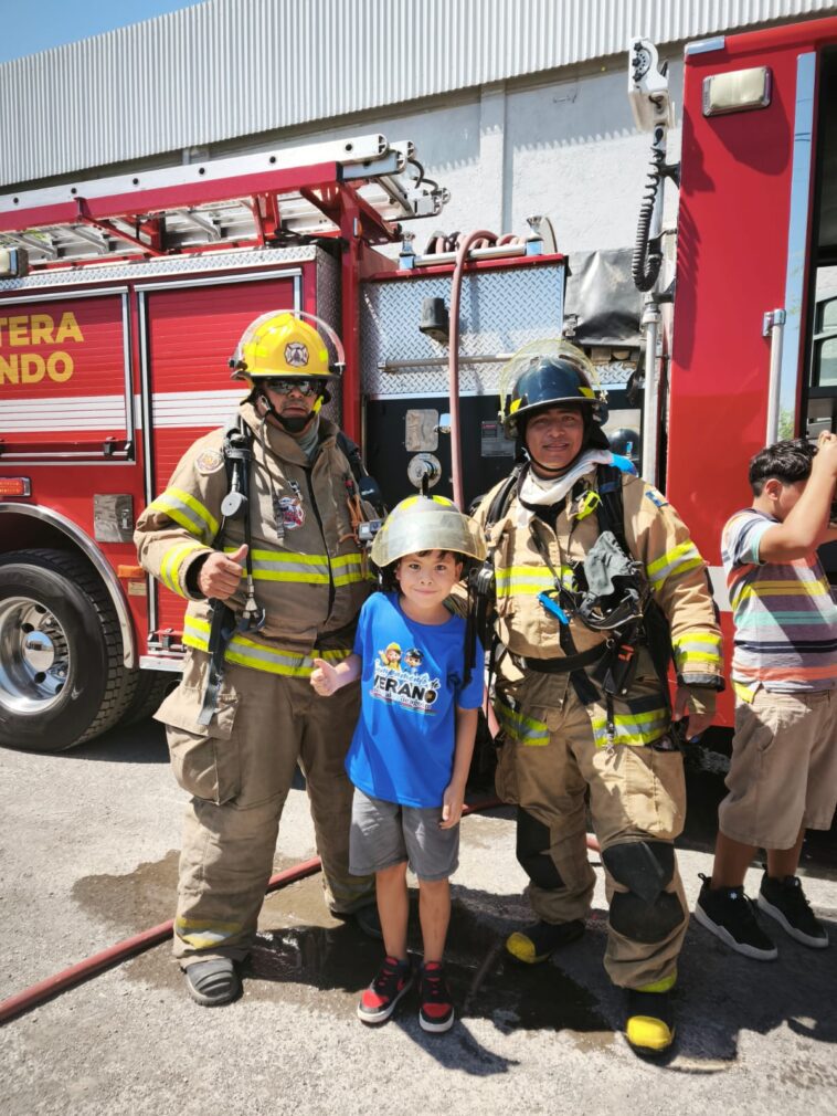 De manera especial, se llevó a cabo una demostración de los equipos de penetración, donde los elementos explicaron el uso del aire comprimido en ambientes no respirables y simularon rescates, despertando gran interés y entusiasmo en los pequeños. Esta dinámica permitió a las y los niños comprender los riesgos y valorar la importancia de la preparación en temas de seguridad.