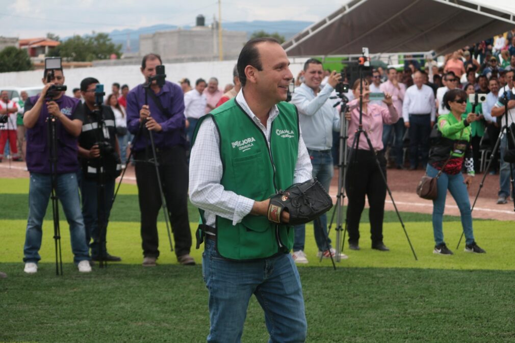 Una inversión de 70 millones de pesos anunció el gobernador Manolo Jiménez Salinas para Parras, durante la entrega de la “Rehabilitación del Campo de Béisbol y Softbol Parras 91”, en el marco del “Arranque de Obras Sociales a Pasos de Gigantes”, junto al alcalde Fernando Orozco Lara.