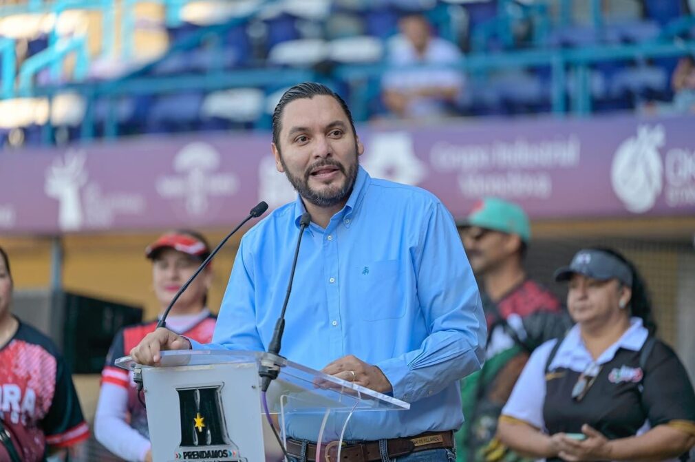 Monclova, Coahuila, 26 de septiembre de 2025.- Con el respaldo del gobernador Manolo Jiménez, el alcalde Carlos Villarreal Pérez encabezó la inauguración del Campeonato Nacional de Softbol Femenil en las categorías 30+, 40+, 50+ y 60+. El edil estuvo acompañado por Antonio Cepeda Licón, Director del Instituto Estatal del Deporte de Coahuila (INEDEC), y por el Subsecretario de Gobierno de la Región Centro Desierto, Sergio Sisbeles. Con este evento, el Gobierno Municipal consolida a Monclova como sede de torneos de talla nacional.