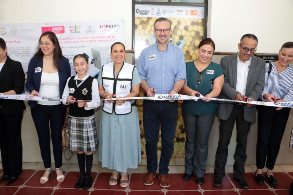 Saltillo, Coahuila; 27 de septiembre de 2025.- El DIF Coahuila, en conjunto con la Secretaría de Educación, el Poder Judicial y la Fiscalía del Estado, puso en marcha la inauguración de Centros de Paz y la entrega de constancias y chalecos a estudiantes reconocidos como Impulsores de Paz, como parte de la estrategia interinstitucional de Impulsores de Paz y Mediación Escolar que impulsa el gobernador Manolo Jiménez Salinas.