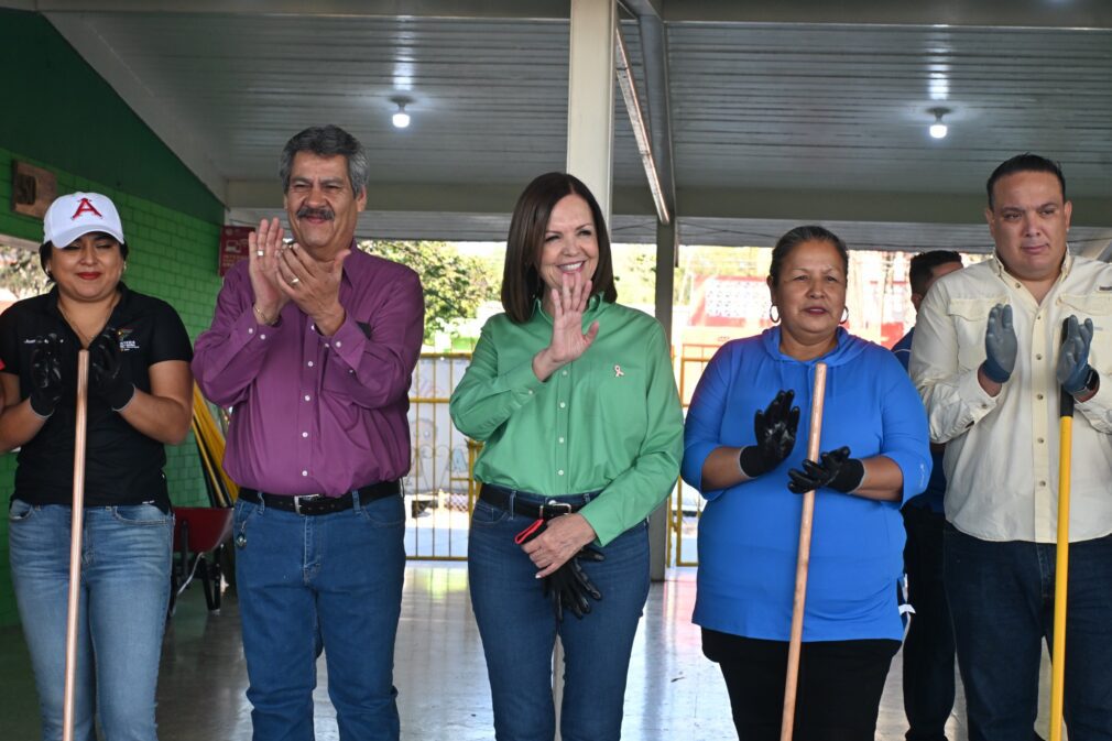 ● La alcaldesa encabezó la limpieza del plantel y reafirmó el compromiso de la administración municipal con la salud y educación de la niñez fronterense.