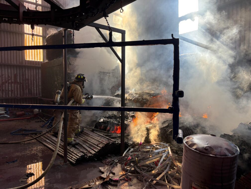 Frontera, Coahuila; a 3 de octubre de 2025.- El gobierno municipal de la alcaldesa Sari Pérez Cantú informó sobre el siniestro que ocurrió en la planta Industrial Conduit ubicada en el libramiento Carlos Salinas de Gortari donde por fortuna fue controlada a tiempo por elementos del cuerpo de bomberos de frontera y Monclova.