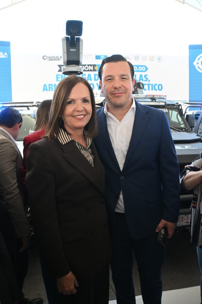 La alcaldesa estuvo presente junto al gobernador del estado en la entrega de armamento, patrullas y equipo táctico para todo Coahuila en Torreón.