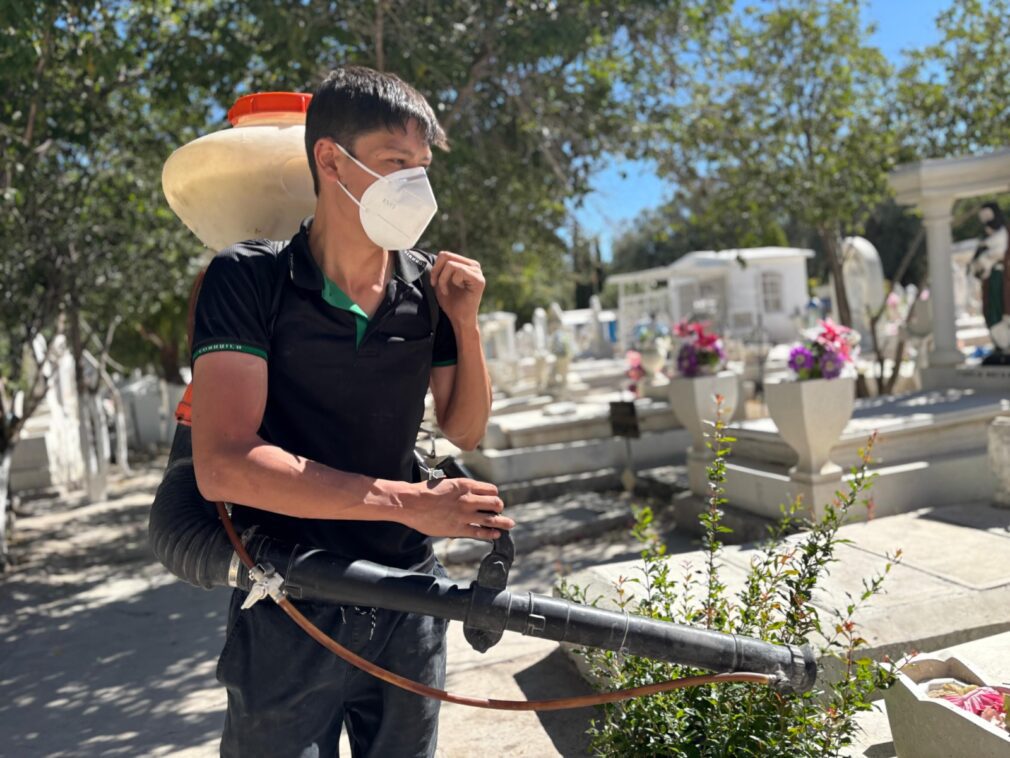 Con la finalidad de proteger la salud de las familias parrenses, el Gobierno Municipal, en coordinación con el Hospital Integral de Parras y la Secretaría de Salud, llevó a cabo una jornada de fumigación y abatización en los panteones municipales, como parte de las acciones de prevención contra el mosquito transmisor del dengue.
