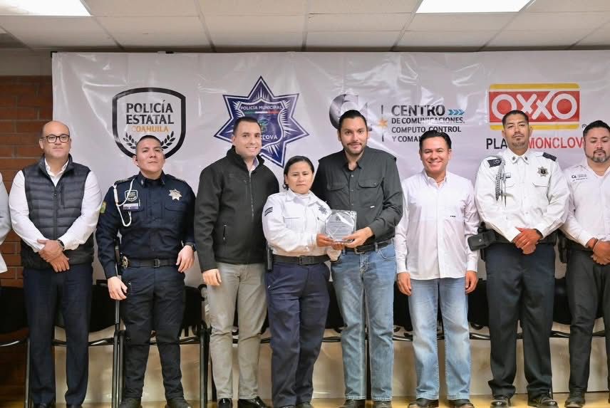 Un poco más temprano, el alcalde asistió a la entrega de reconocimientos otorgados por OXXO a elementos de la Policía Municipal y Estatal, donde se destacó el compromiso de las corporaciones y la colaboración entre instituciones públicas, sector privado y sociedad civil para fortalecer la seguridad y proteger a las familias de Monclova y la Región Centro.
