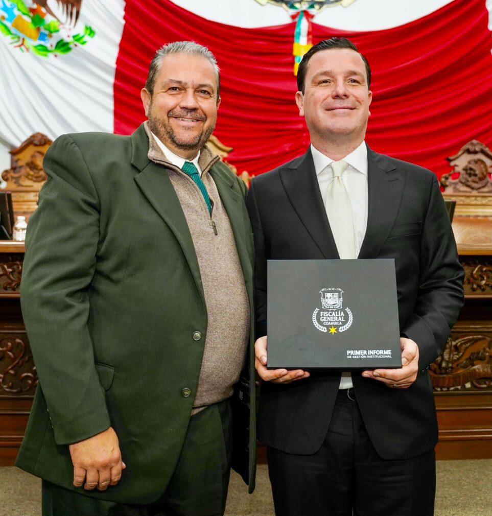 Gutiérrez Merino felicitó al fiscal Fernández Montañez por su informe y trabajo realizado en este tiempo y reiteró que el Gobierno Municipal de Ramos Arizpe continuará sumándose a la estrategia estatal de seguridad, junto con el ejército y Marina.