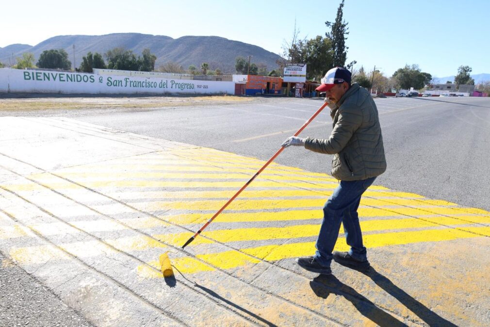 Salazar García señaló que, además de la carretera Parras – Paila, el mantenimiento de reductores de velocidad también se realiza de manera gradual en el interior de la ciudad, atendiendo las necesidades del tránsito urbano y priorizando aquellos puntos donde el desgaste por el uso constante ha provocado la disminución de su visibilidad.