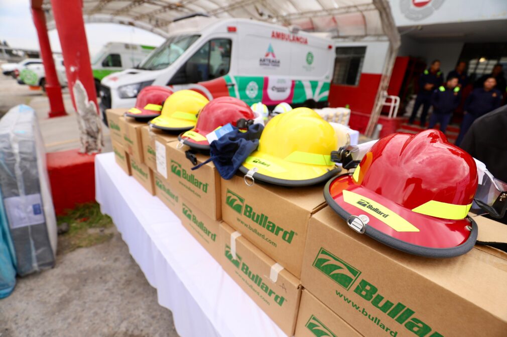 Como parte del apoyo, se entregó equipamiento que impacta directamente en la operatividad y el desempeño del personal: camas para el descanso digno de los elementos, cascos de seguridad, radios de comunicación y mangueras, insumos fundamentales para mejorar la respuesta ante emergencias y proteger la integridad de los bomberos y de la población.