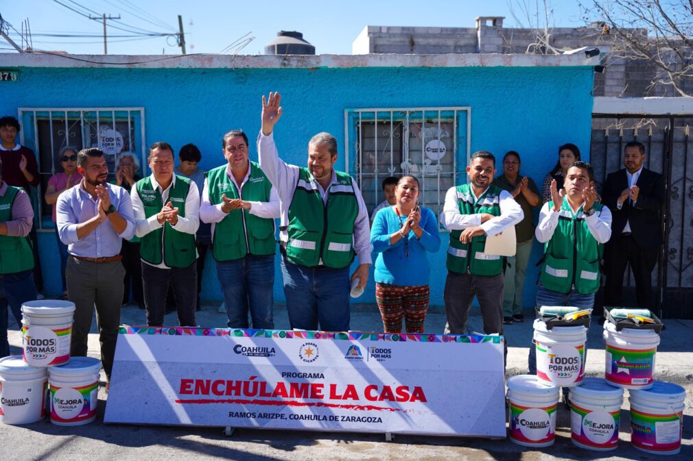 Ramos Arizpe, Coahuila de Zaragoza, a 20 de febrero del 2026.– Con el arranque del programa Enchúlame la Casa -correspondiente a sus acciones de este año- en la colonia Elsa Hernández, el Gobierno Municipal de Ramos Arizpe, con el Gobernador Manolo Jiménez, inició una nueva etapa de embellecimiento urbano que beneficiará a más de 115 viviendas distribuidas en ocho cuadras, mediante la aplicación de pintura en fachadas.